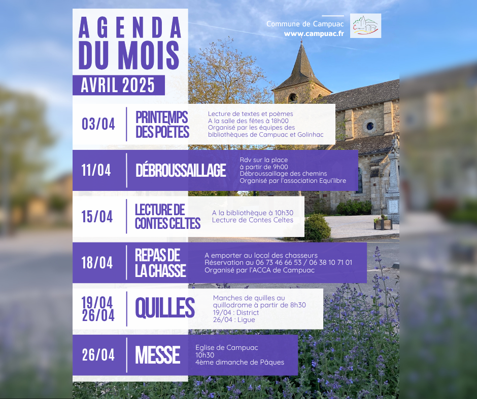 🗓️ Un nouvel agenda mensuel pour ne plus rien manquer à Campuac !