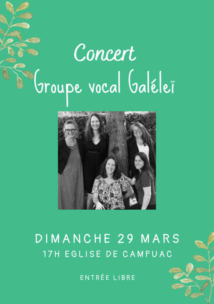🎤 La municipalité de Campuac et l’équipe de sa bibliothèque « Livres en Liberté » vous proposent un concert du Groupe Vocal Galéleï