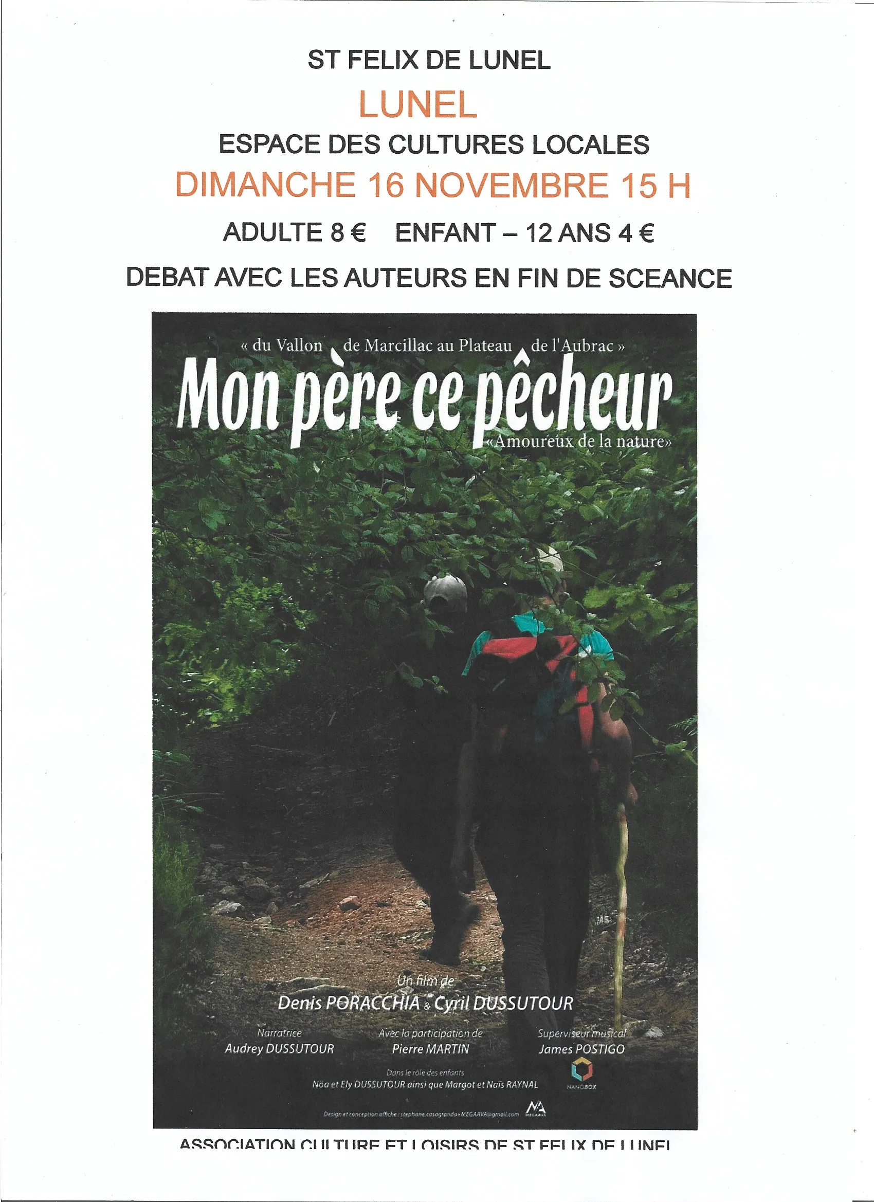 C’est l’histoire d’un père, passionné de nature et de pêche, raconté par ses enfants. Un voyage au gré des saisons dans le département de l’Aveyron entre le vallon de Marcillac et le plateau de l’Aubrac. Un film partage intergénérationnel où petits et grands pourront contempler la faune et la flore dans des paysages à couper le souffle. Un film fait pour les amateurs de très belles images et pour les amoureux de ce beau département qu’est l’Aveyron. Les auteurs du film seront présents et vous pourrez échanger avec eux.