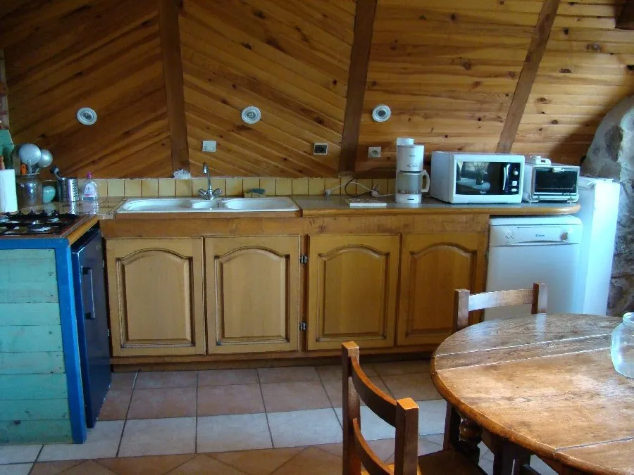 Gîte duplex avec séjour/cuisine équipée au RdC donnant sur terrasse avec salon de jardin. Salle d’eau et WC indépendant. A l’étage, 2 mezzanines mansardées, pour des coins nuit dans un « esprit cabane » (1 lit 140, 1 lit 80).
