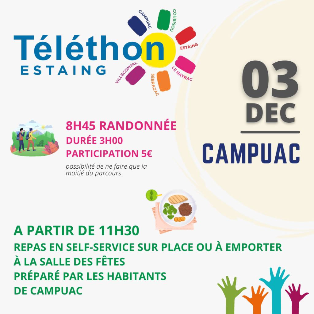 Retrouvez le programme du téléthon à Campuac le samedi 3 décembre.